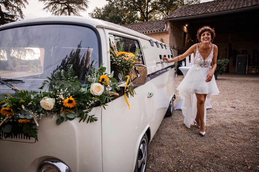 Pour une arrivée encore plus iconique, cette formule associe notre combi bar à une coccinelle de collection avec chauffeur (également géré par nos soins).